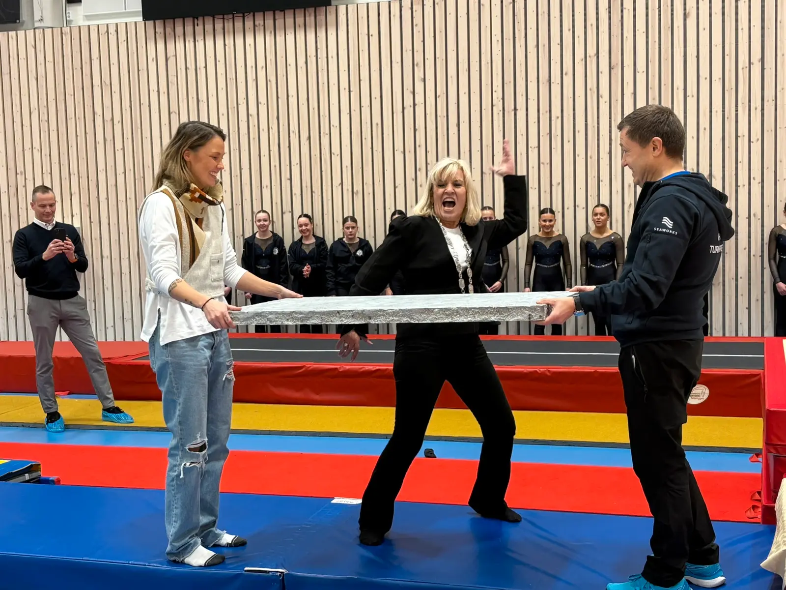 Åpningen inneholdt blant annet taler fra ordfører Kari-Anne Opsal, som ønsket alle velkommen med stor stolthet og glede. Opsal tok en annen vri på den tradisjonelle båndklippingen for å markere at hallen offisielt er åpen. Hun knuste ei isoporplate med et ordentlig karateslag!!