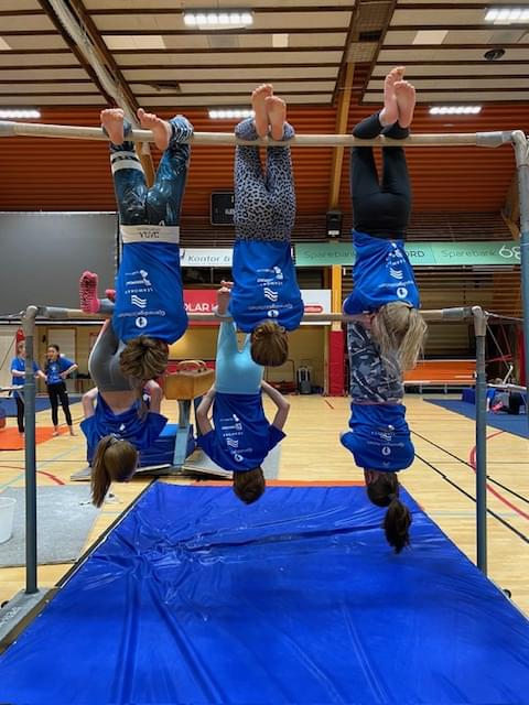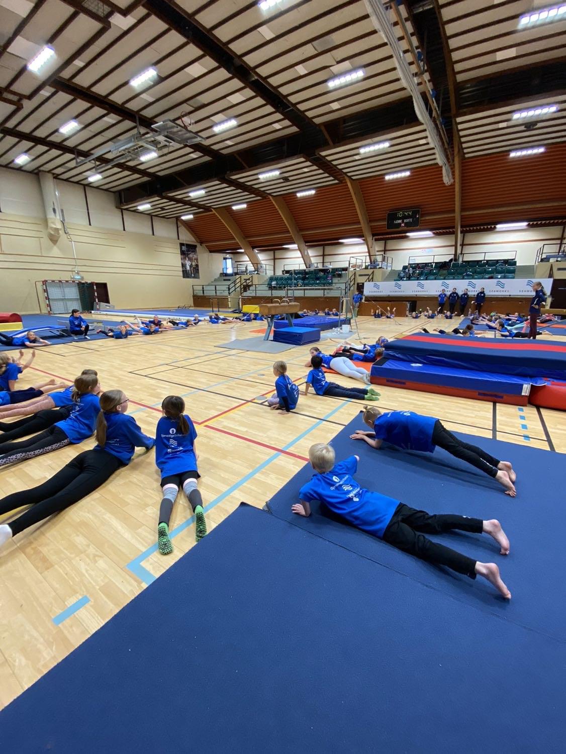 I hallen kunne de unge utfordre seg selv på trampetten, slå hjul, stå på hender og øve på andre triks. Opplegget sto våre Unge Trenere bak.